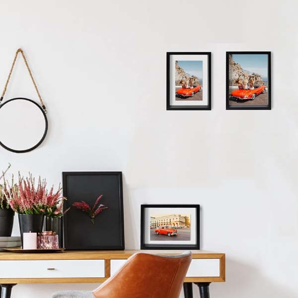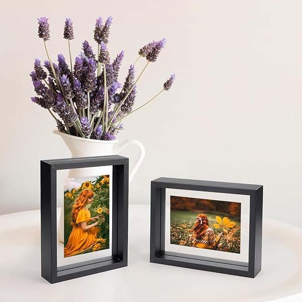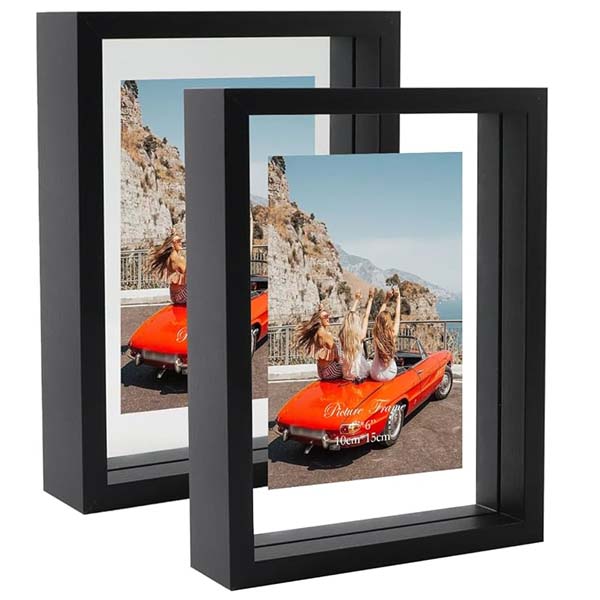 "Cadres Photo Floating" translates from French to "floating photo frames" in English. These are photo frames designed to give the illusion that the photo inside is floating or suspended. They often use a clear acrylic or glass material and can be quite stylish, offering a modern and minimalist way to display pictures.