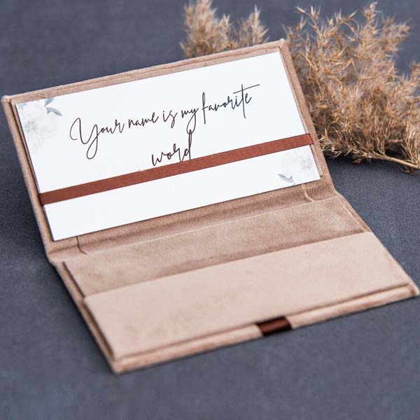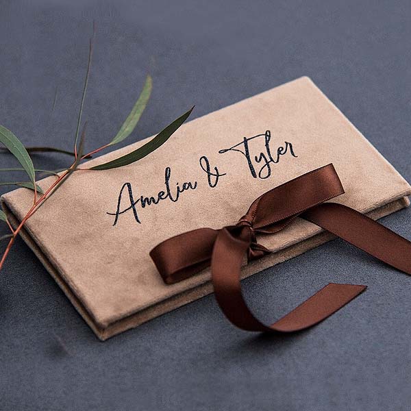 Personalized velvet envelope adds a sumptuous and luxurious feel to any invitation, making it an exquisite choice for weddings, formal events, or special celebrations. The soft texture and rich appearance of velvet create an inviting and elegant presentation that is sure to impress.