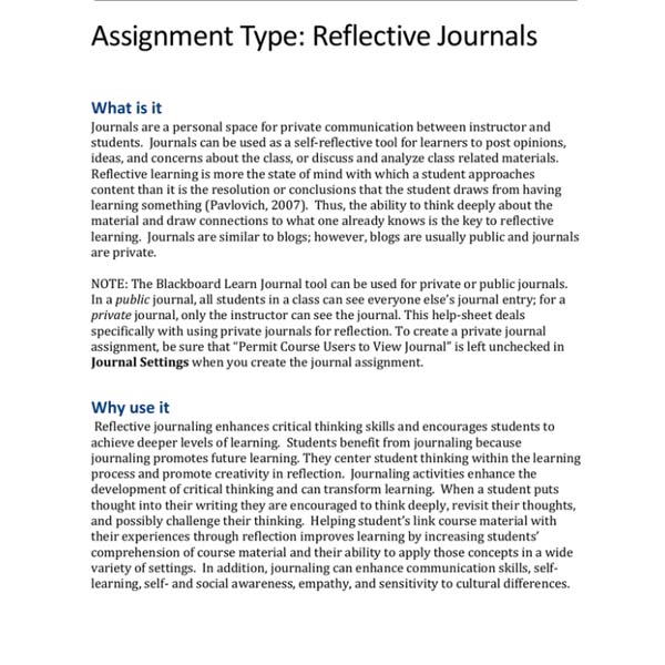 Reflective journals are a type of writing assignment where individuals document and analyze their personal thoughts, experiences, and learning. They are often used in academic settings, personal development, and professional contexts to foster self-awareness and critical thinking.